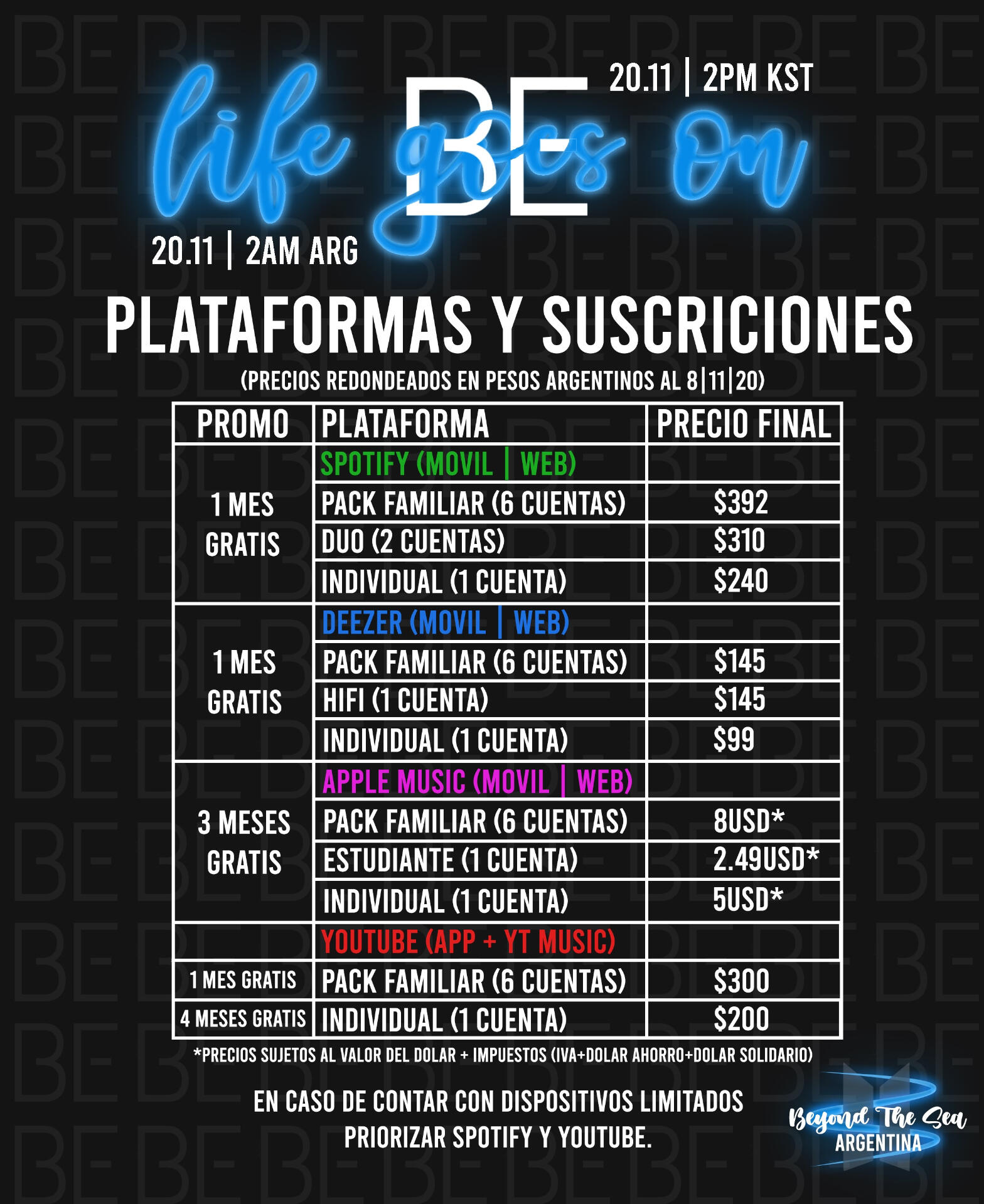 Cada cuenta premium de Spotify donada para el CB de #BEserá fue entregada a DDAENG TEAM quien monitoreó día a día los stream por medio de lastfm!