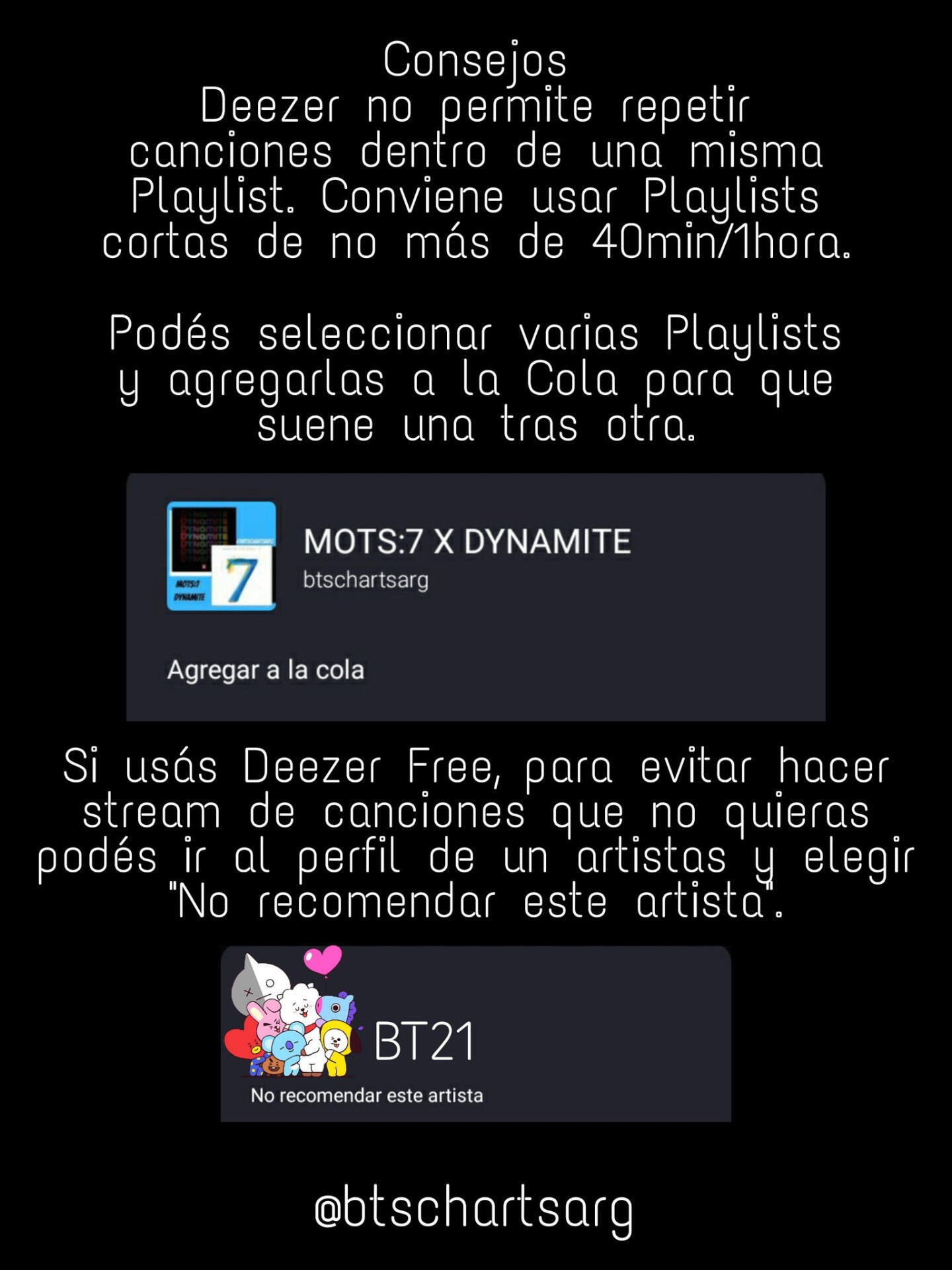 @BEPlaylistBOT es una cuenta exclusiva para la creación y difusión de playlist temáticas haciendo foco en #BTS_BE, LGO y Dynamite